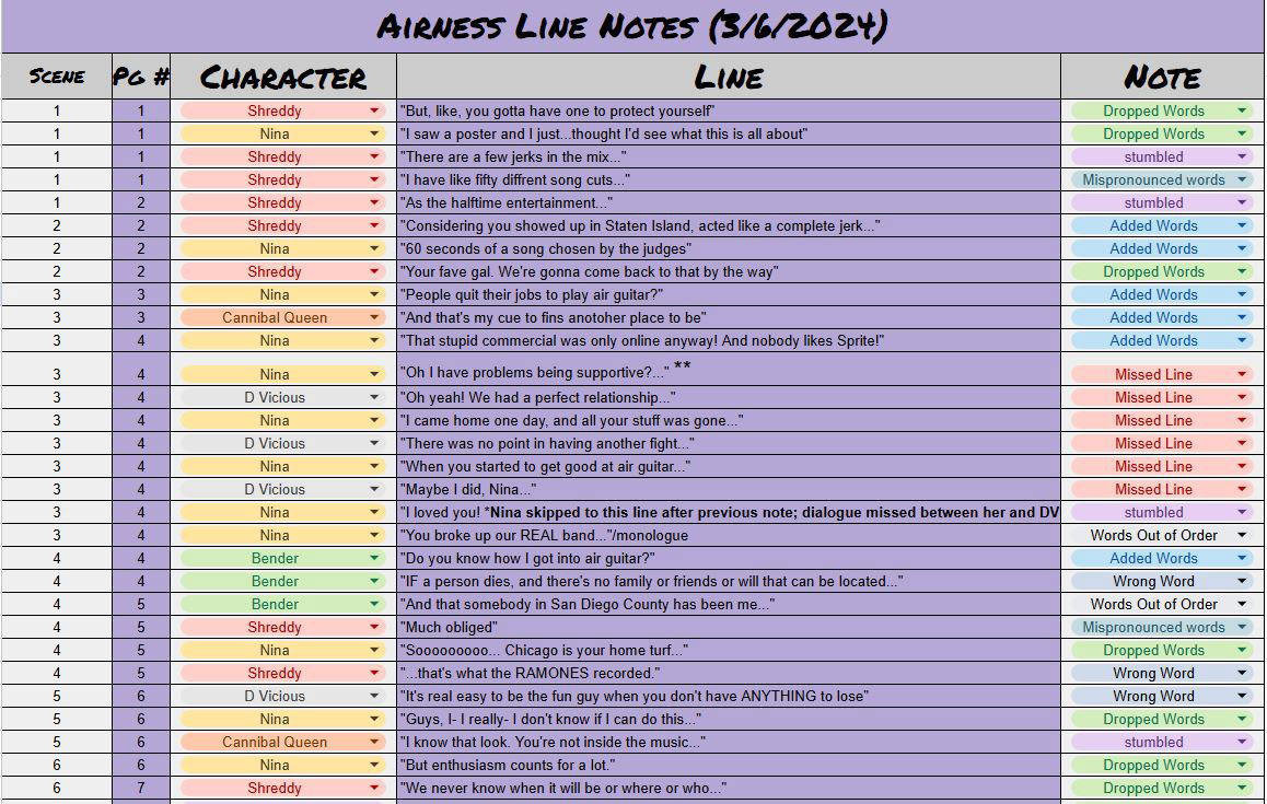 Final Air Guitar Choreography Videos Sent To The Cast & Crew (The numbers line up with the script and serve as the blocking notation for the air guitar numbers)
